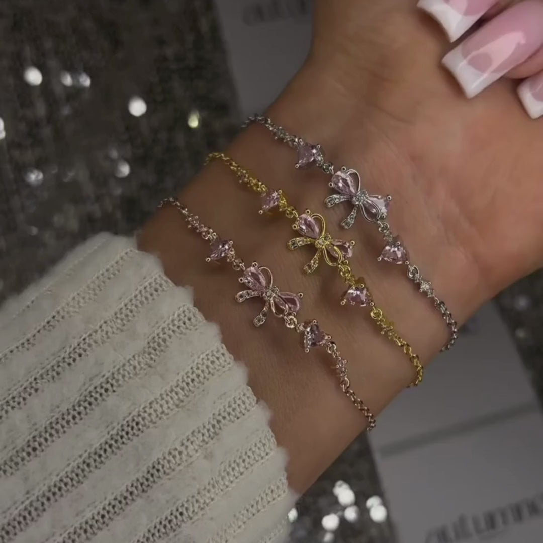 Indulge in effortless elegance with the Alicia Bow Bracelet. This dainty bracelet adds a touch of cute to your everyday look. Perfect for everyday wear, this bracelet features an intricate bow design that exudes sophistication and charm. Elevate your style with this must-have accessory.