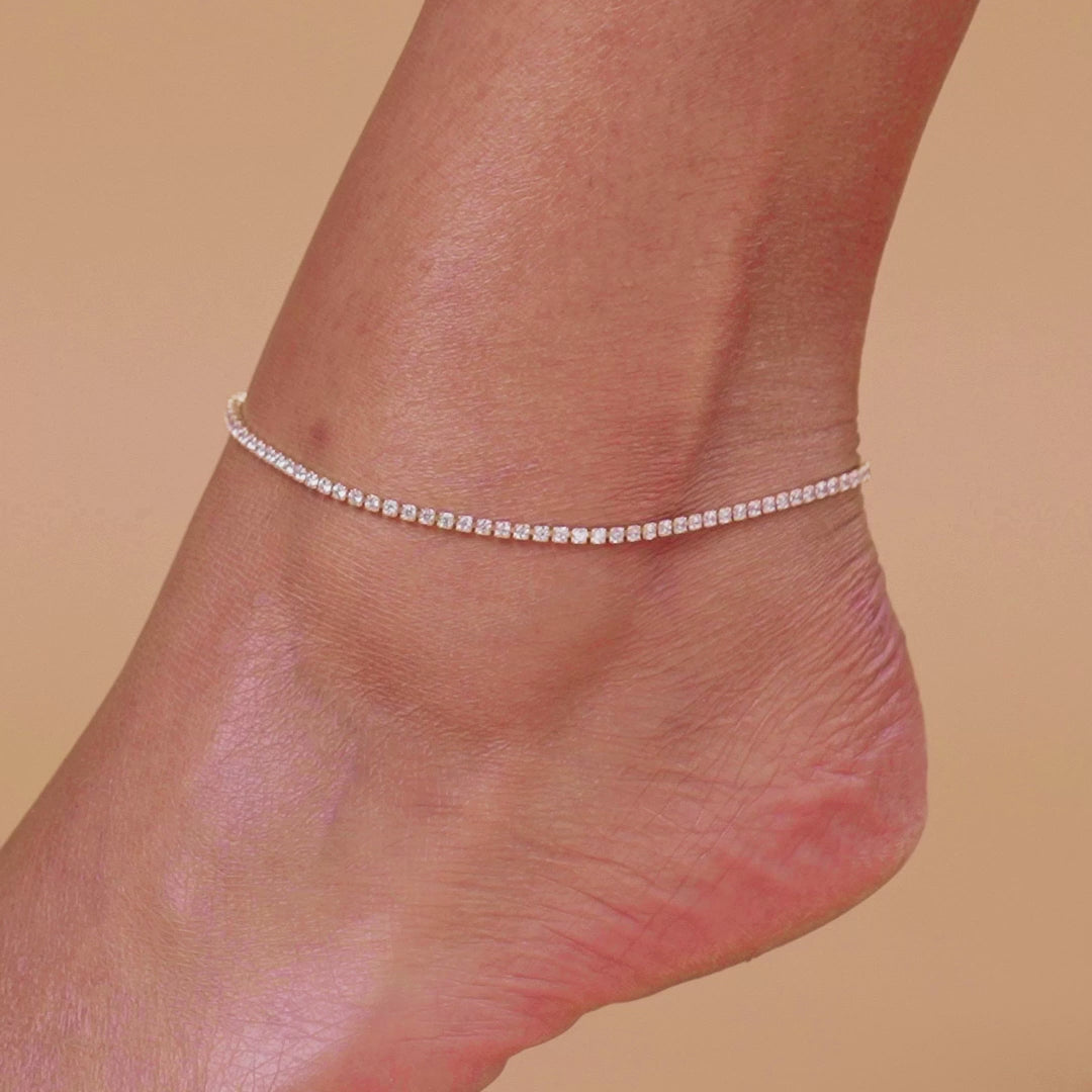 Indulge in stunning sparkle with the Mia Tennis Anklet. Crafted with Azura's signature 14K gold-plated cubic zirconia, this anklet makes a fab statement. Whether worn barefoot or with sandals, this simulated diamond anklet exudes chic elegance. Embrace endless styling possibilities now.