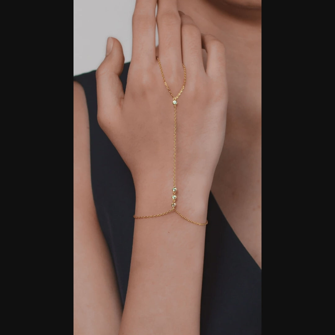 Upgrade your accessory game with the Ciena Hand Chain. This statement piece features a delicate chain that elegantly connects from your wrist to your finger, adding a touch of sophistication to any outfit. Made with premium AAA Cubic Zirconia stones, this hand chain is perfect for adding a subtle yet luxurious touch to your everyday look.