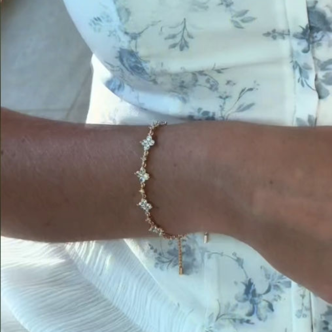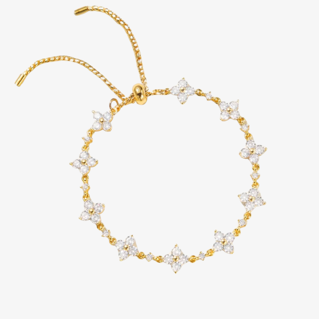Elevate your style with the Sparkle Clover Bracelet, a refined accessory that subtly symbolizes fortune and good luck. Its delicate shimmer adds a graceful touch to any outfit, while the adjustable design ensures a comfortable, tailored fit. Wear this elegant bracelet as a constant, sophisticated reminder that luck is always within reach.