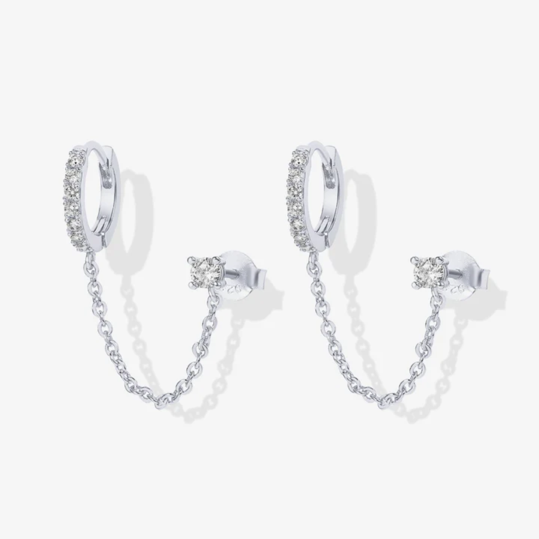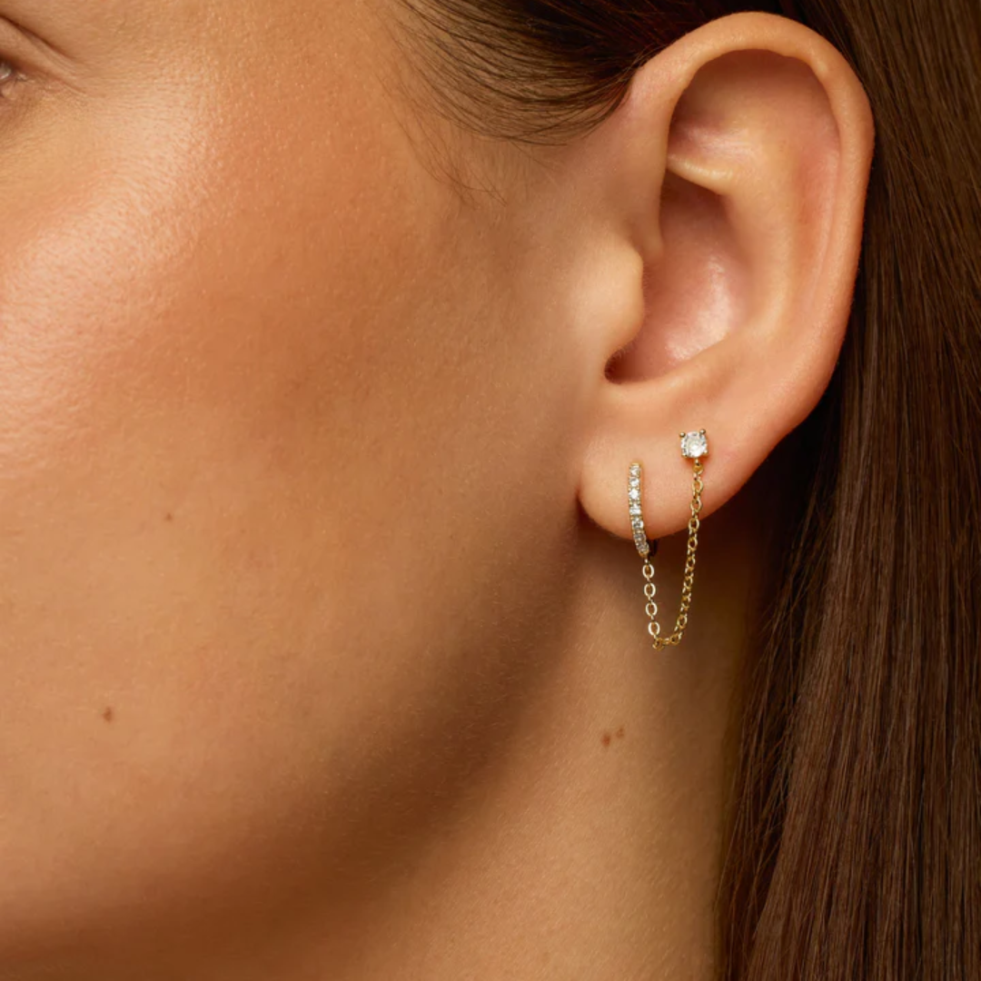 Chained Huggie Hoop Cubic Zirconia Stud Earrings