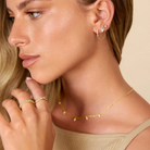 Transform your ensemble with our Chained Huggie Hoop with Cubic Zirconia Stud. This exquisite accessory combines refined elegance with contemporary flair, enhancing your attire with its dimensional presence. The artful fusion of delicate chain detail and brilliant CZ creates a sophisticated statement piece that discerning style connoisseurs will appreciate.