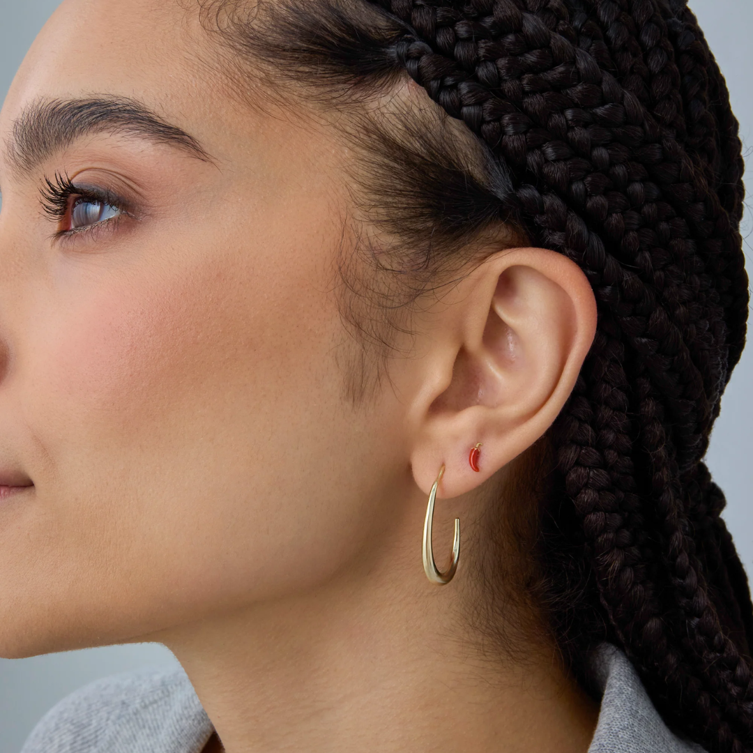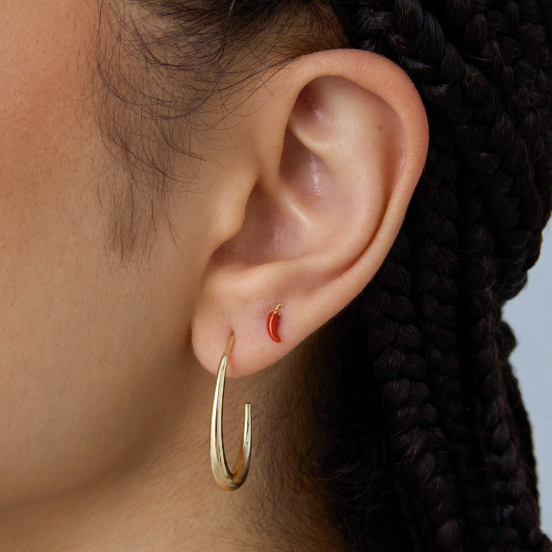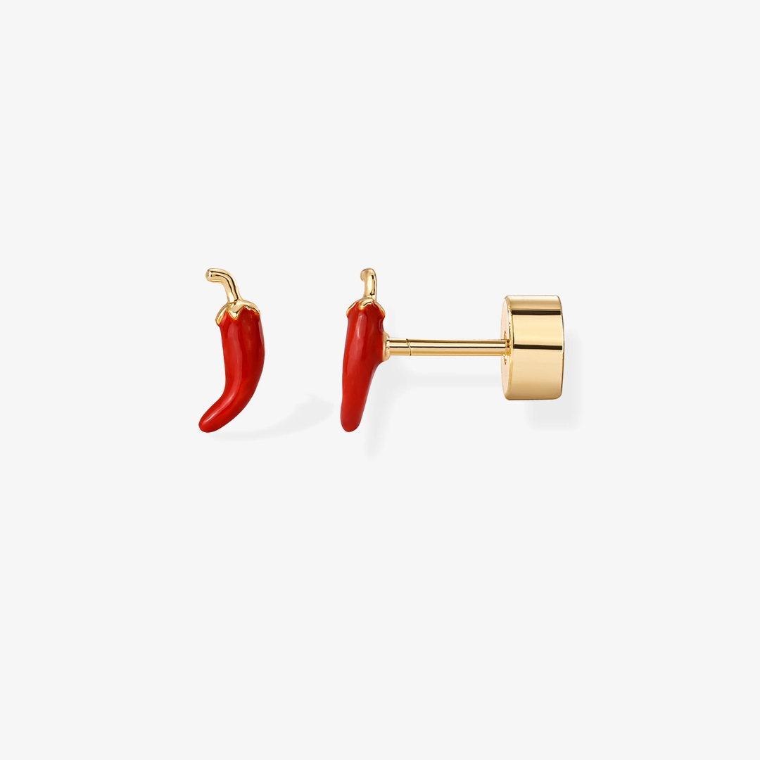 Elevate your ear game with these Chili Pepper Flat Back Studs, exquisitely plated in 14K gold. Their sleek design makes them ideal for layering across cartilage, lobes, helix, or conch, while also standing out beautifully on their own. Add a subtle yet striking touch of warmth and sophistication to your jewelry collection with these versatile studs.