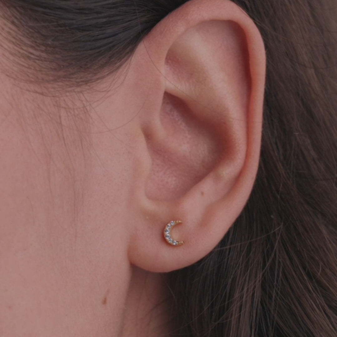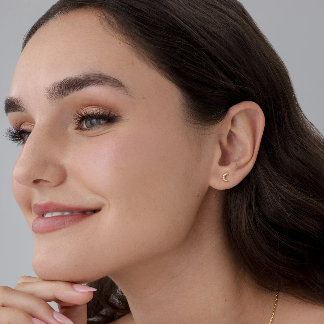 Elevate your evening look with the Cosmic Moon Flat Back Studs. Featuring crescent moon shapes adorned with sparkling cubic zirconia stones, these flat back earrings offer a refined touch of celestial elegance. Perfect for adding subtle glamour to a night out, they combine comfort with sophisticated style.