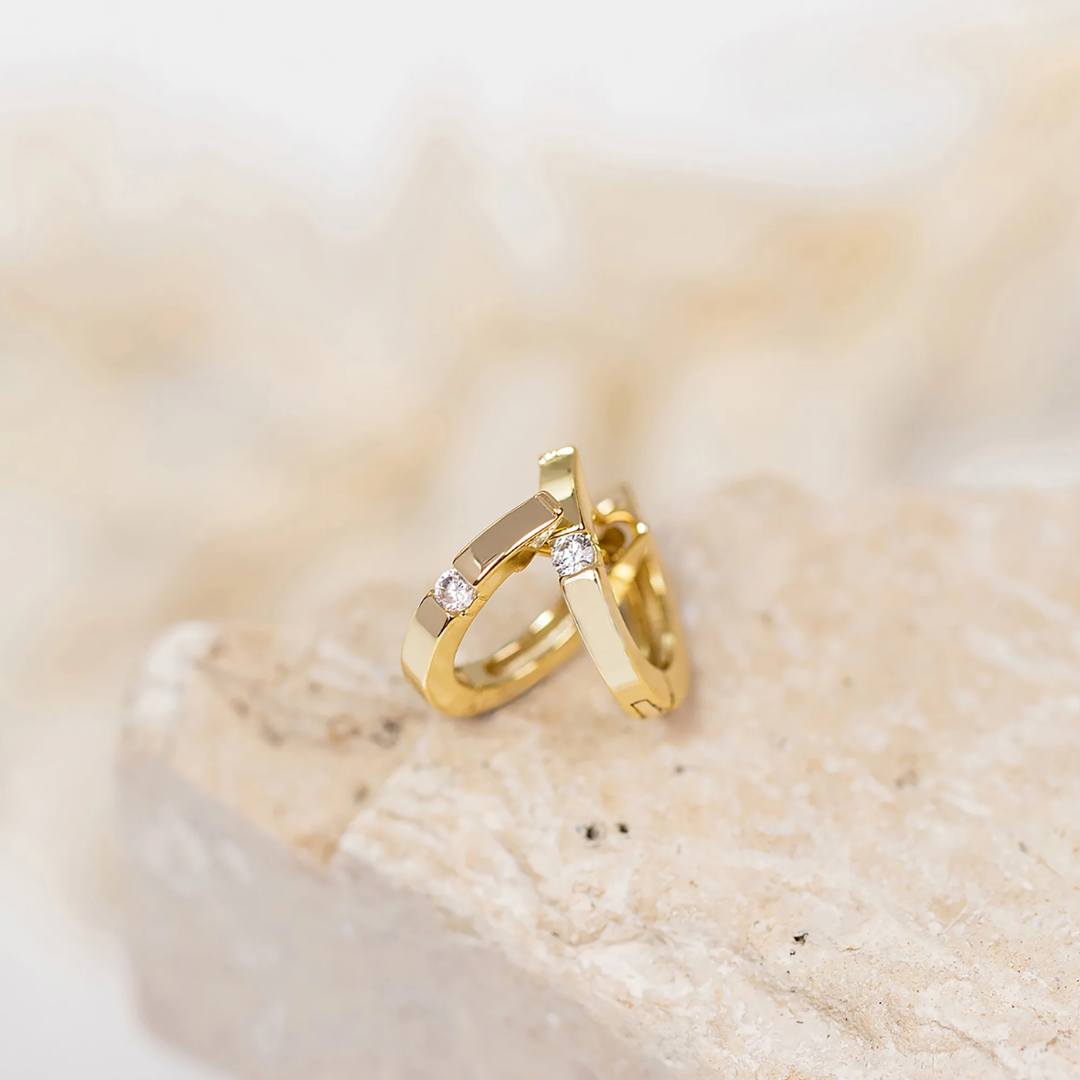 Transform your look with the Leviosa Hoop earrings. Bold curved silhouettes cradle a suspended cubic zirconia that catches every eye in the room. These aren't just accessories—they're statements of fearless style for the woman who refuses to blend in. Dare to stand out and own every moment with these captivating hoops on your ears.