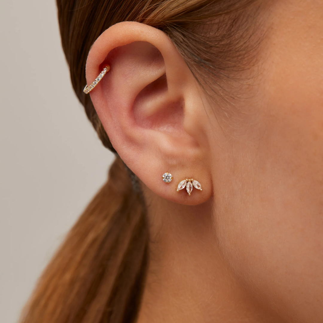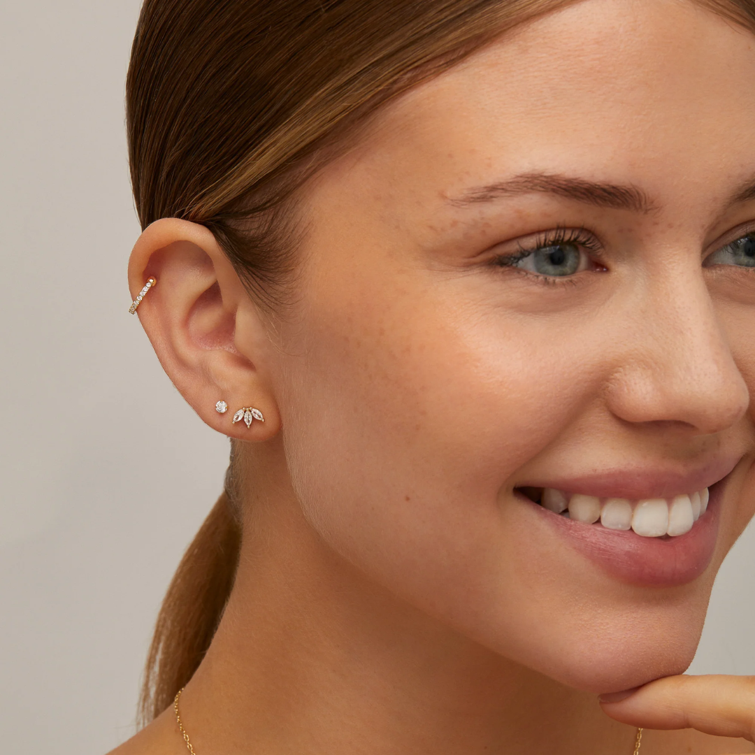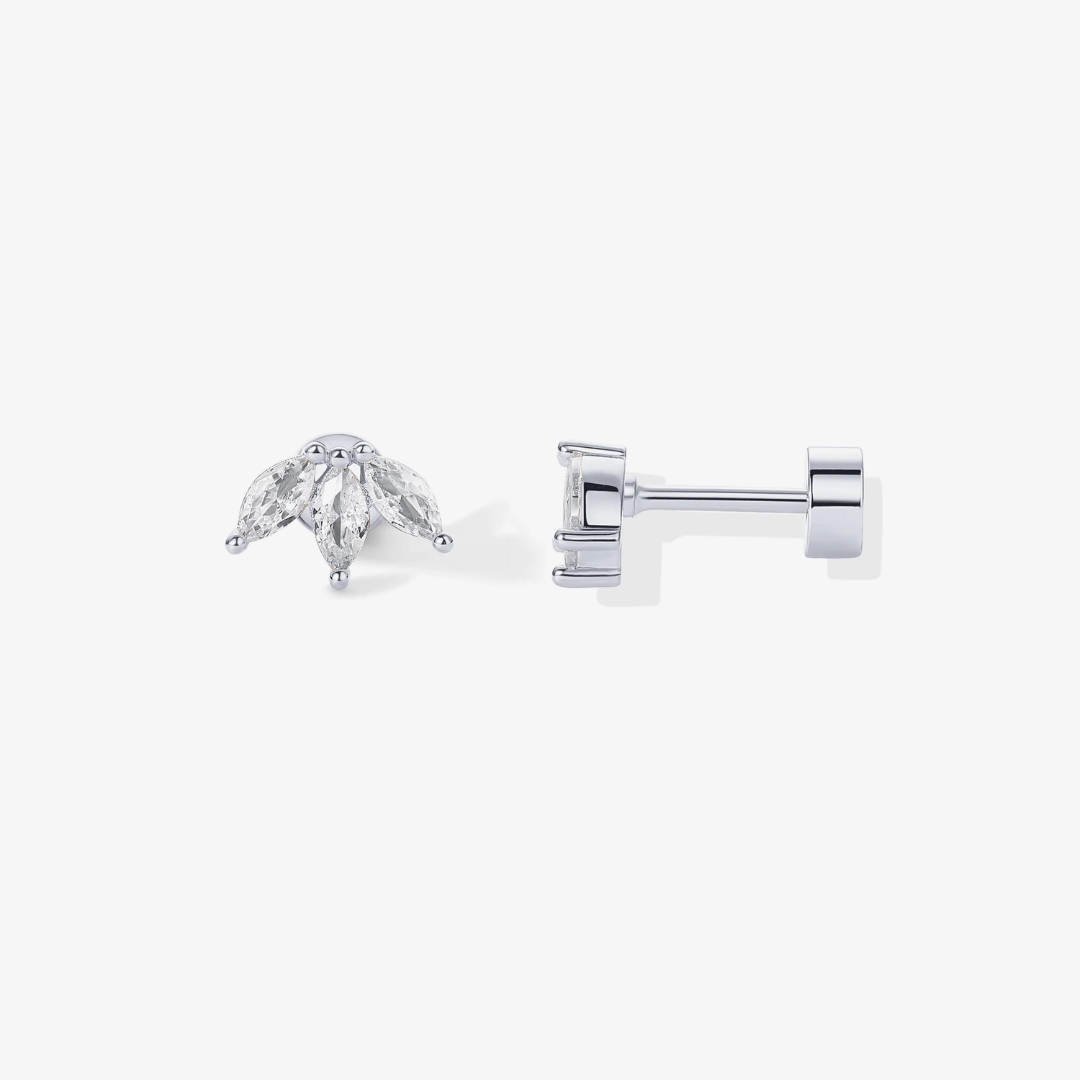Indulge in sophistication with Marquise Radiance Flat Backs. These exquisite earrings feature premium AAA navette cubic zirconia that exude elegance. Designed for everyday wear, their flat back provides comfort, perfect for small ears or cartilage piercings. Elevate any look with these dainty studs.