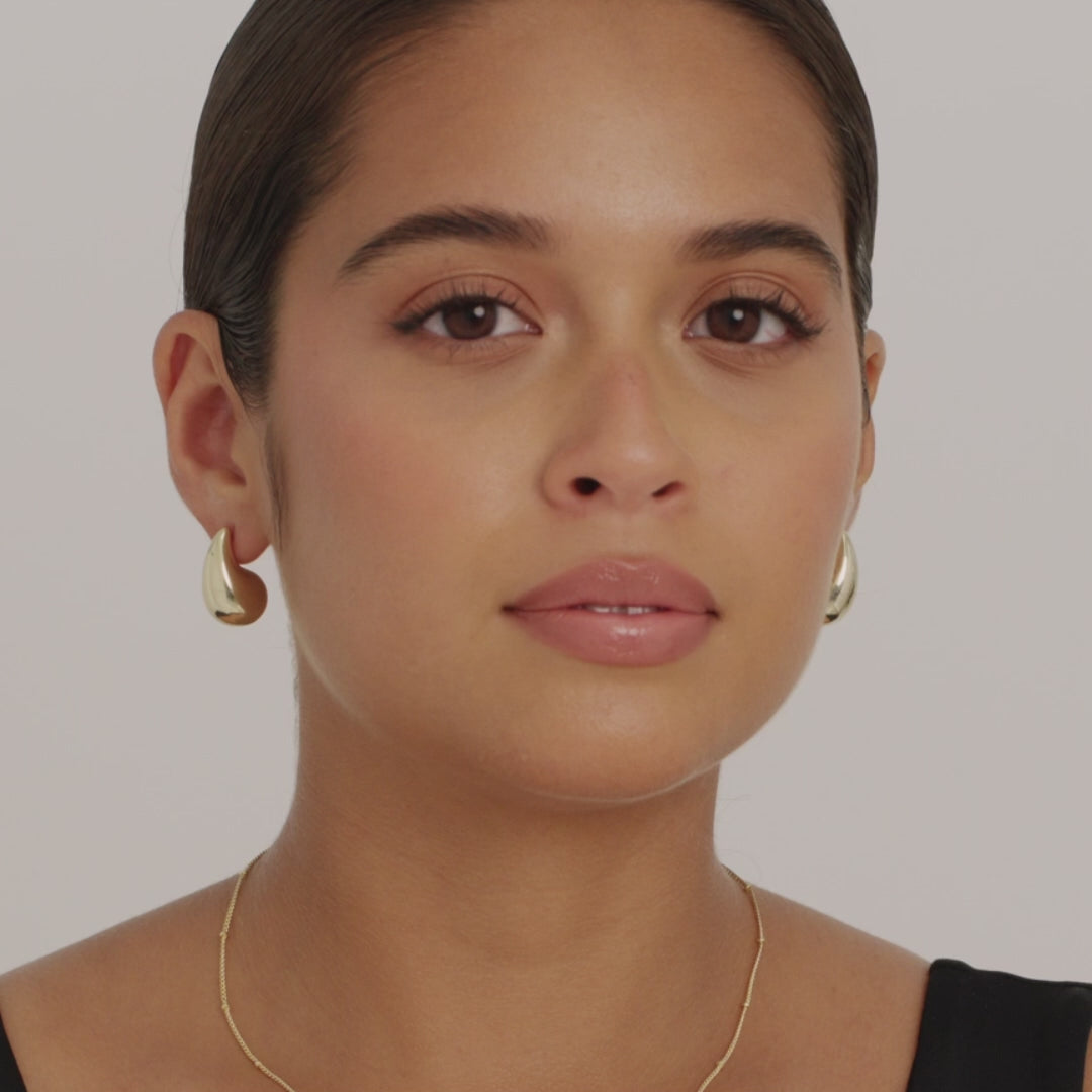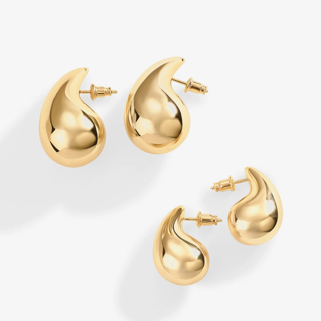 These earrings capture elegance through their pure and simple design. The Classic Teardrop Hoop Earrings are perfect for daily use, offering exceptional comfort thanks to their lightweight construction. Whether worn solo or combined with other studs, they bring a subtle yet fashionable edge to any look.