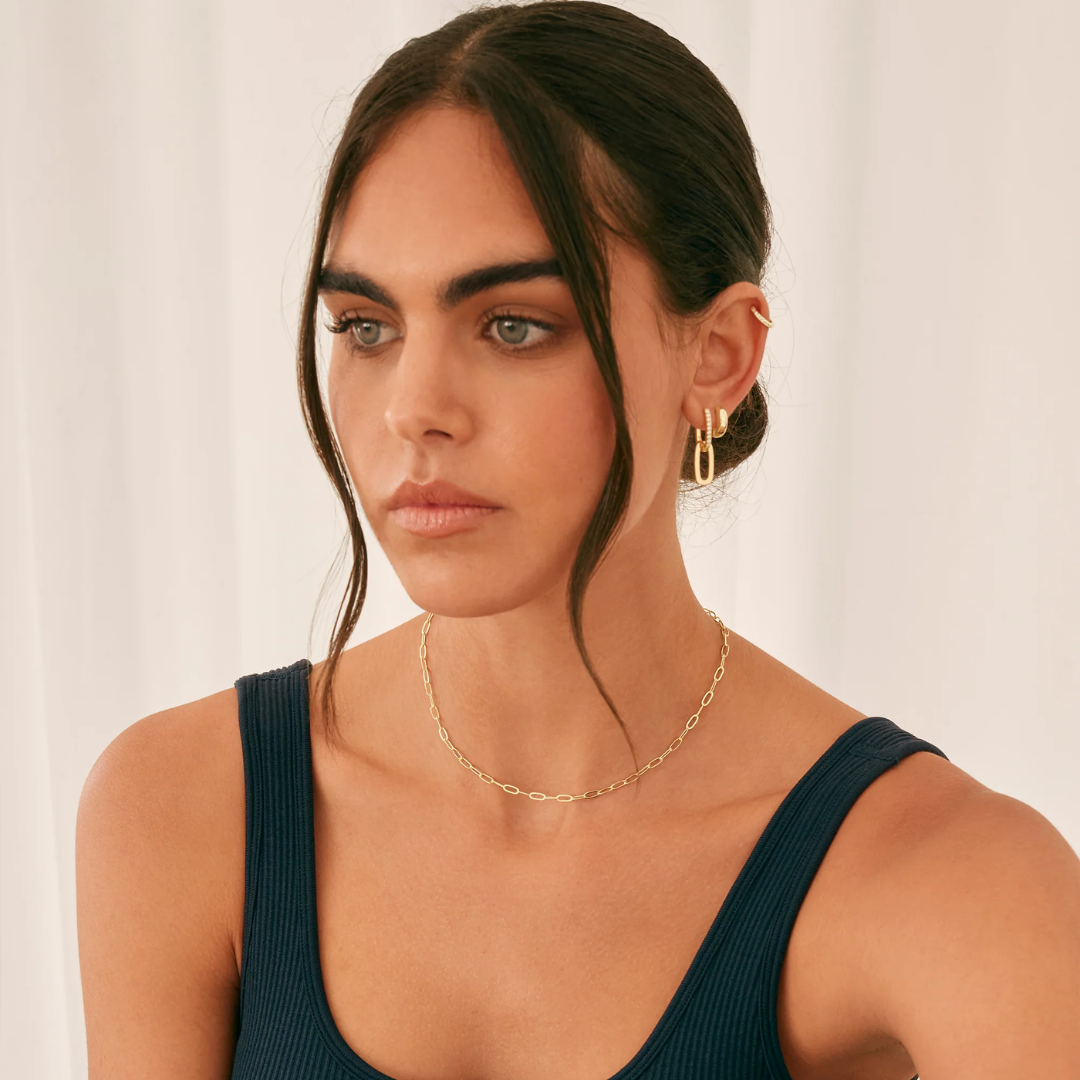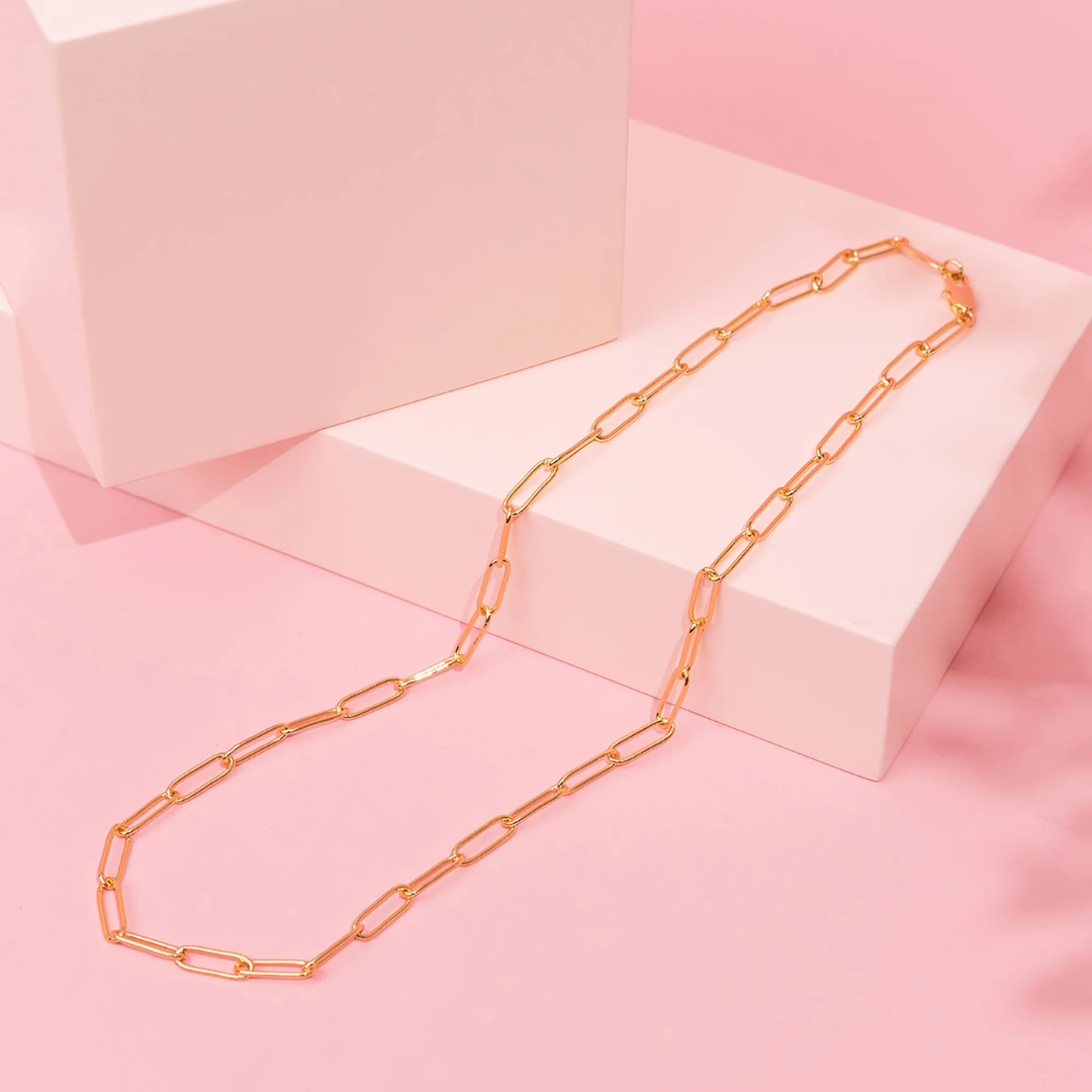 Elevate your everyday style with our sleek and sophisticated paperclip chain necklace. A versatile essential, it effortlessly adds a touch of elegance to any outfit, day or night. Perfect for the modern woman who appreciates both fashion and function.