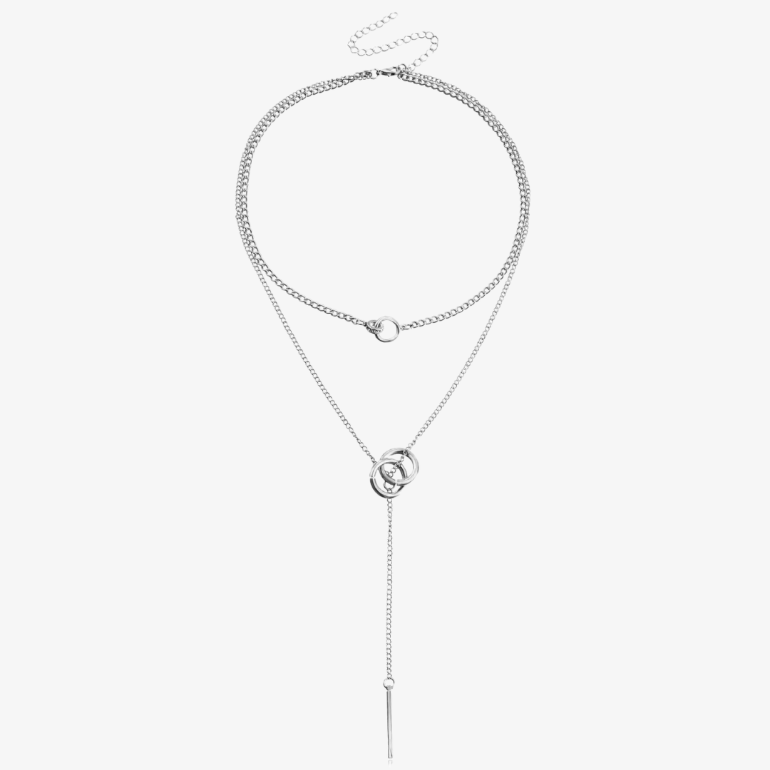 • Measurements: Inner Chain 41+10 cm / Outer Chain 52 cm / Linked Rings 1.5 cm / Vertical pendant 2.5 cm