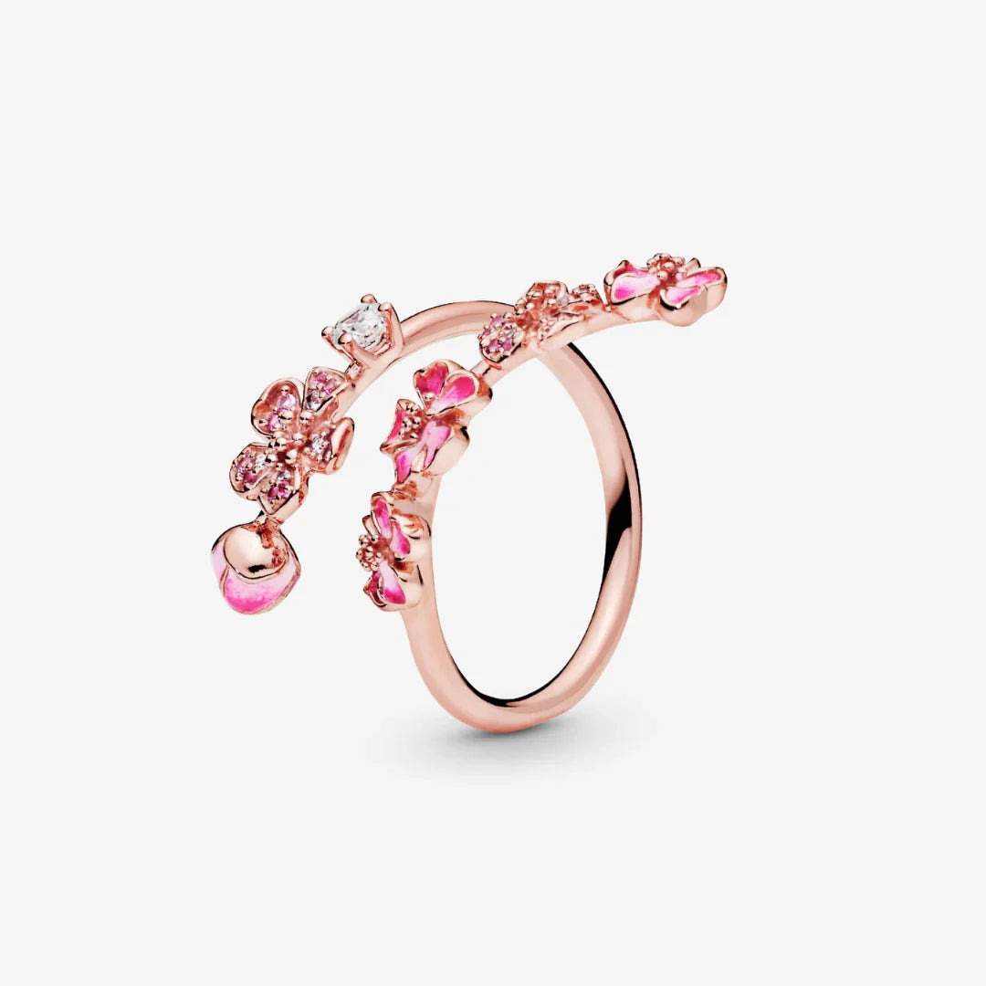 Indulge in the charm of spring with our Pink Peach Blossom Flower Branch Open Ring. With dainty pink petals adorning a delicate branch, this exclusive ring captures the grace of Chinese blossoms. Elevate any look with a touch of sophistication.