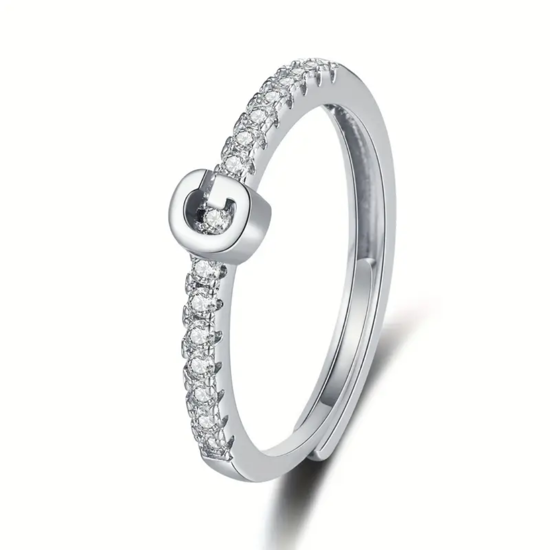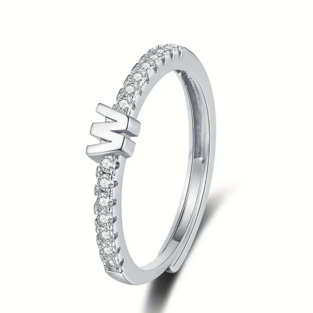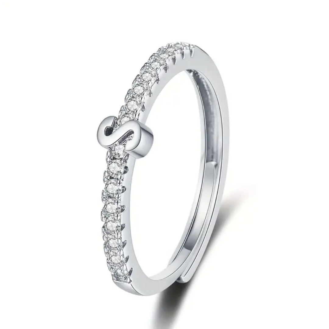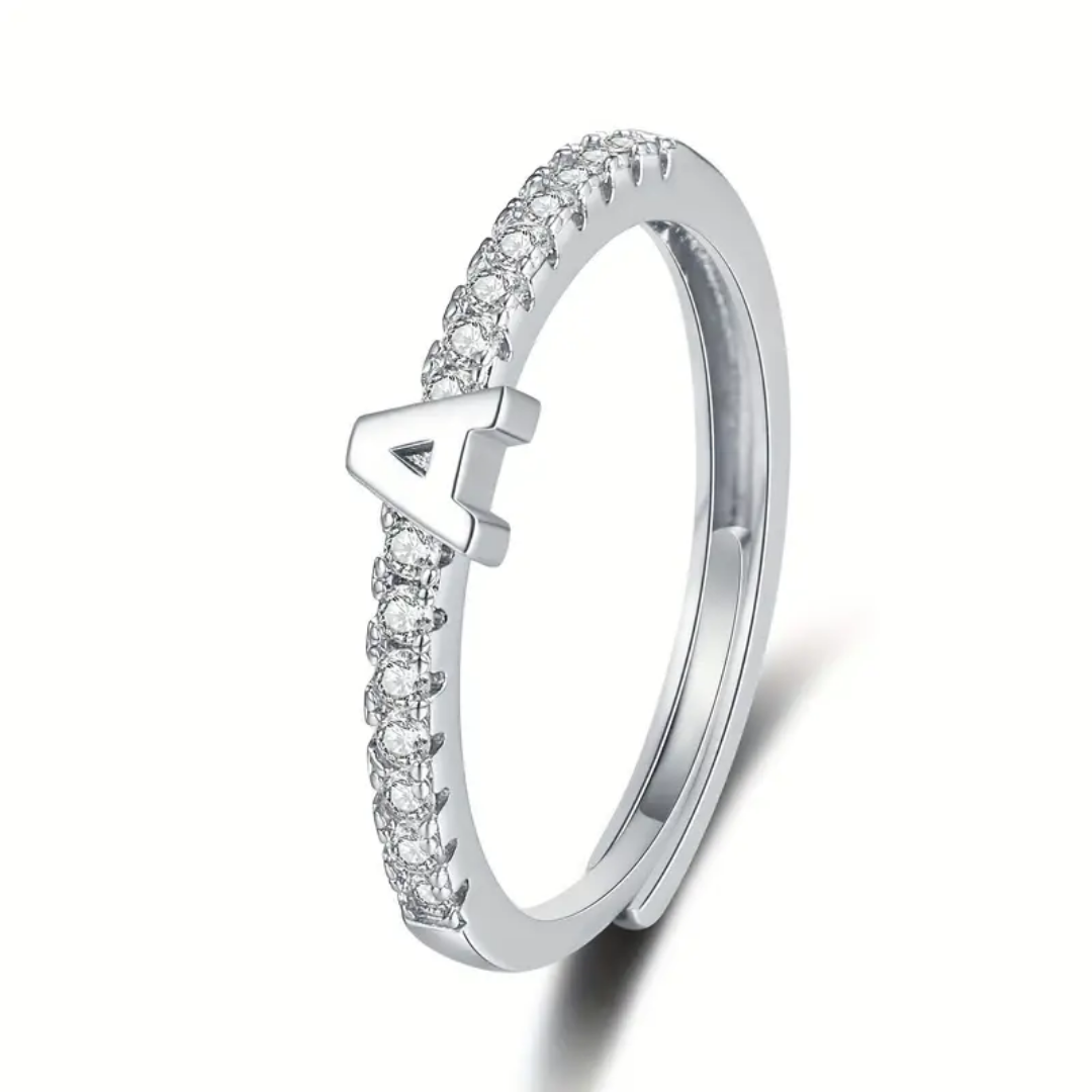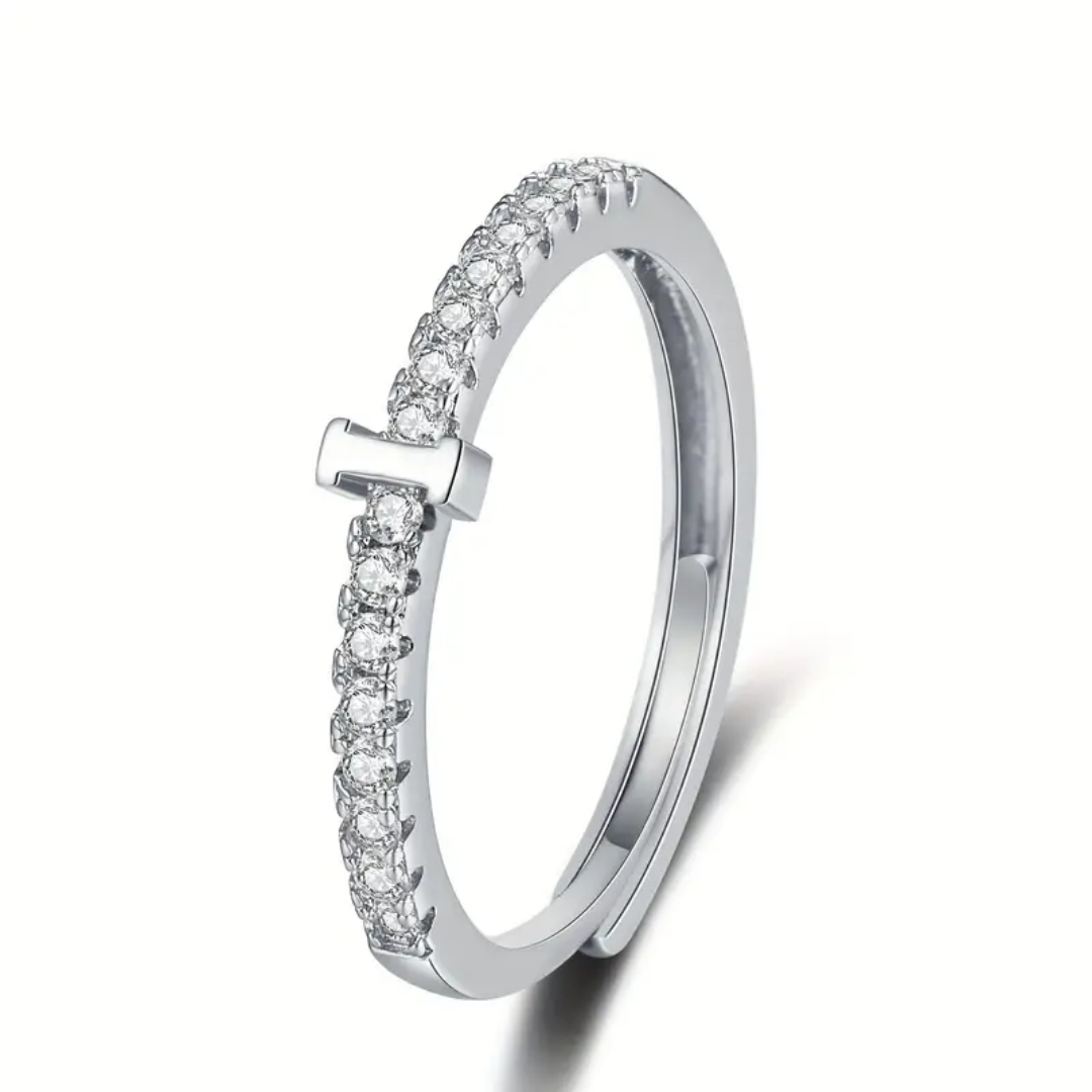 Vienná Iced Initial Letter Adjustable Open Ring