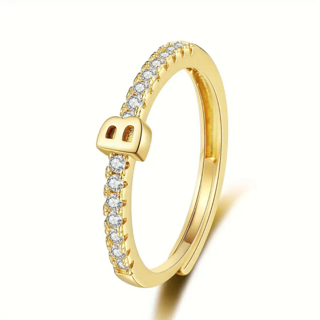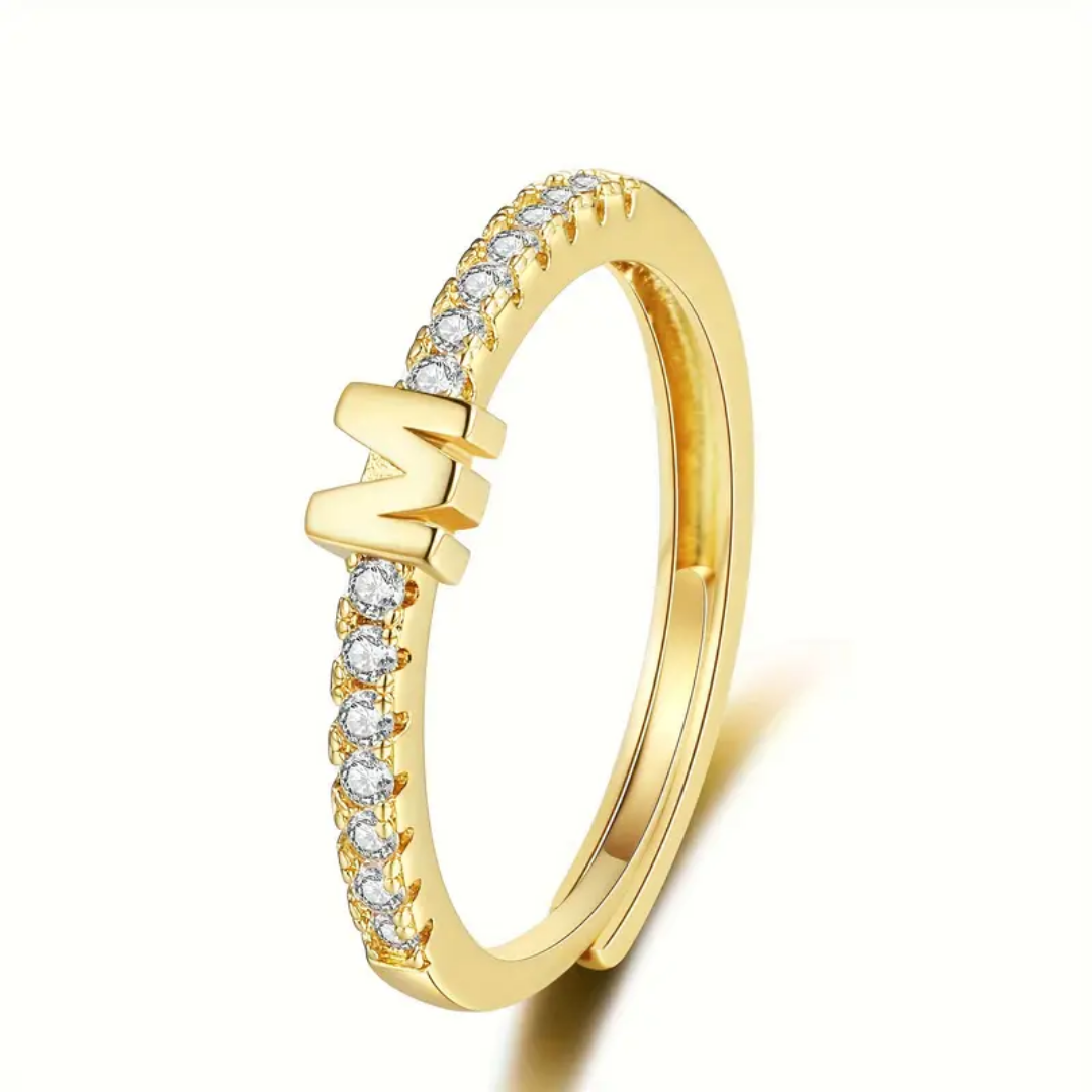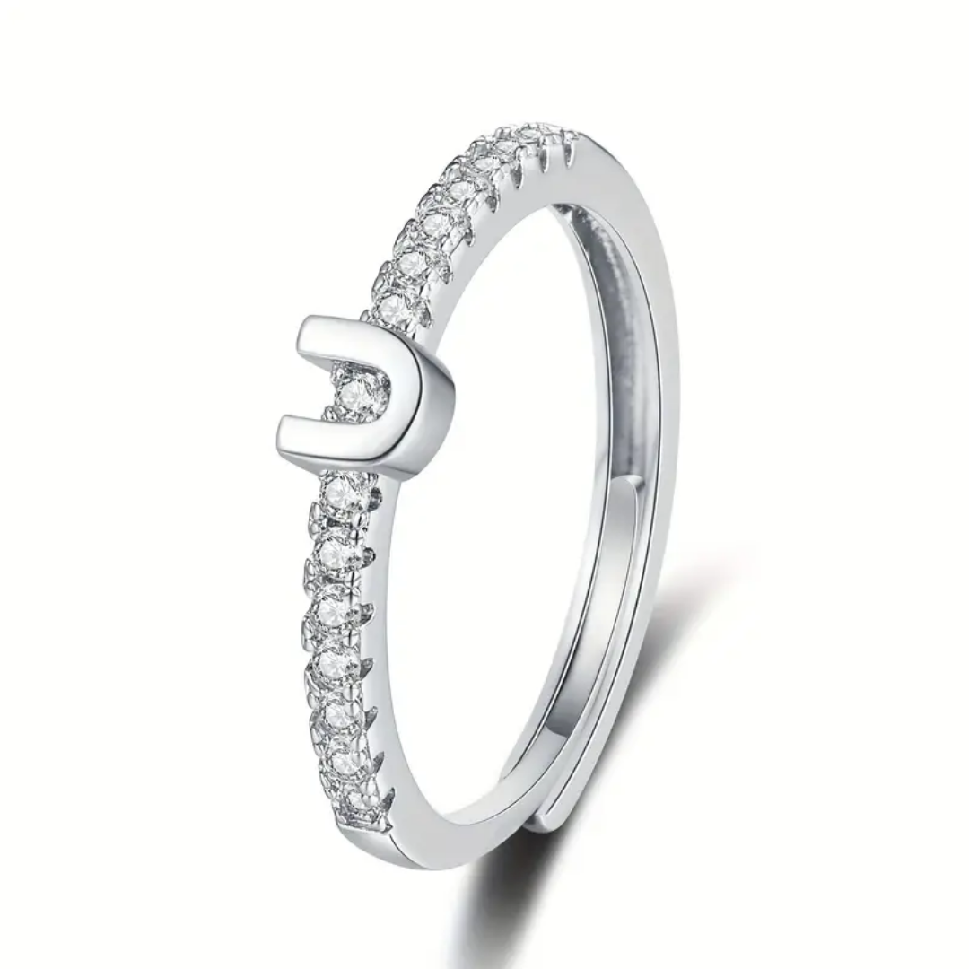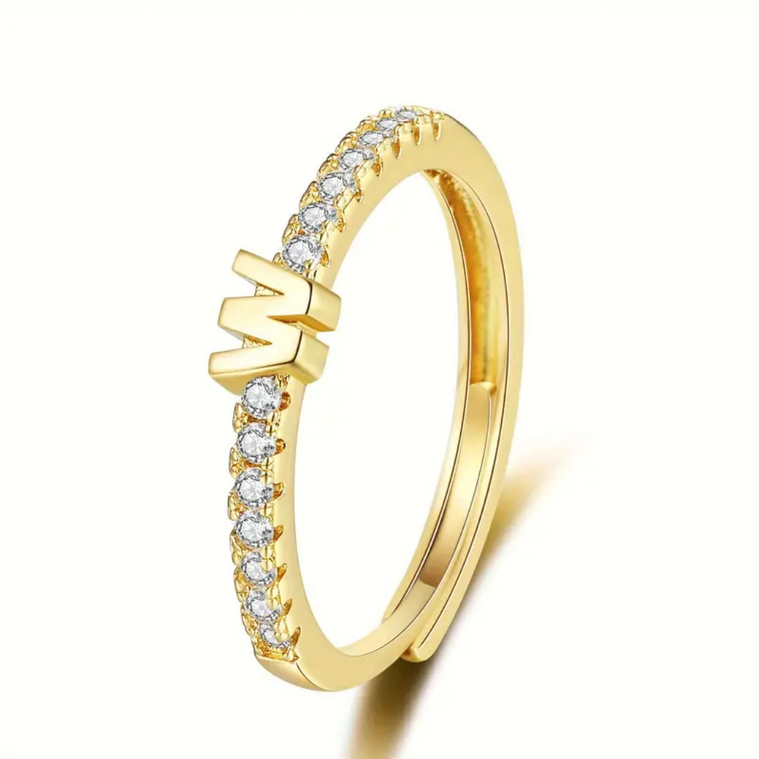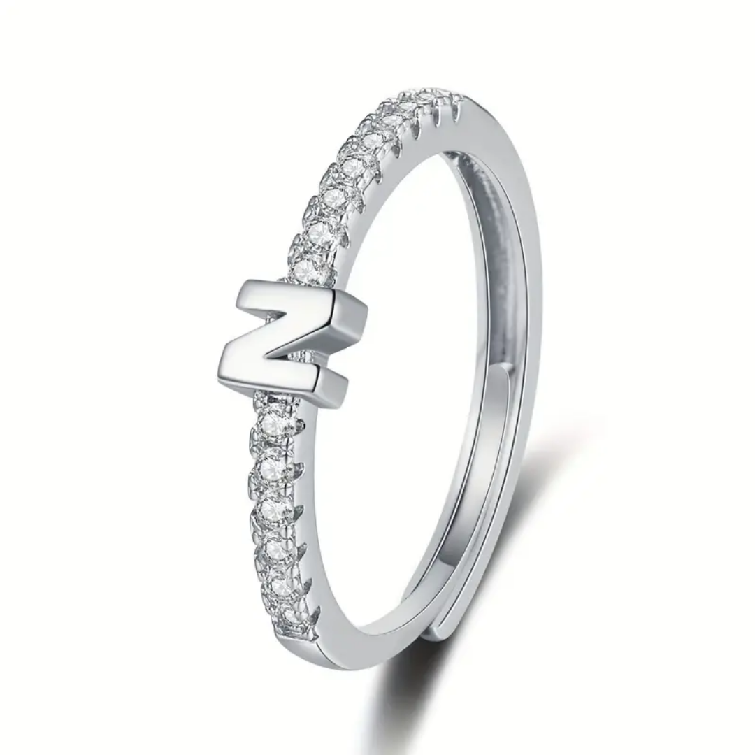 Vienná Iced Initial Letter Adjustable Open Ring