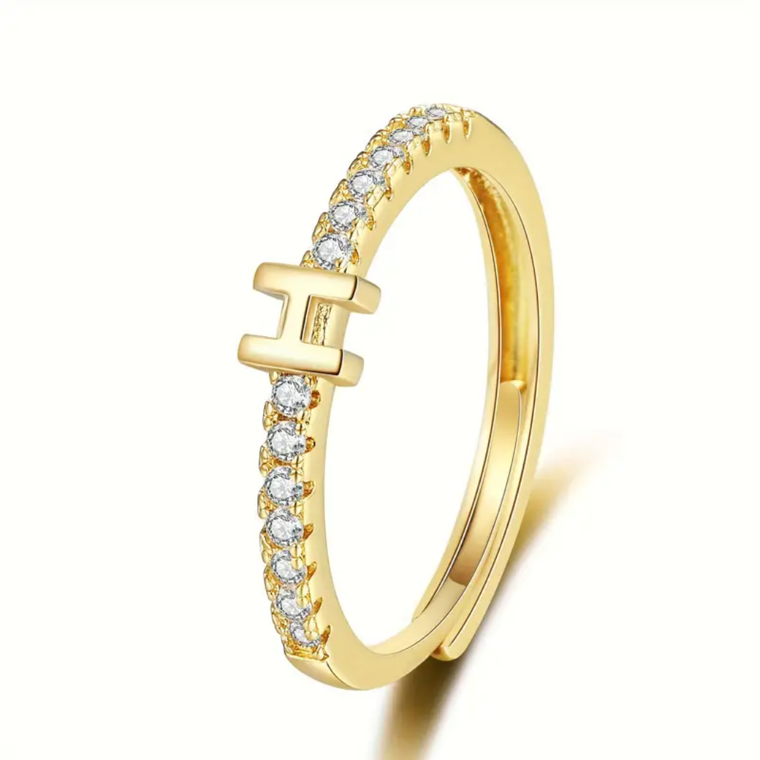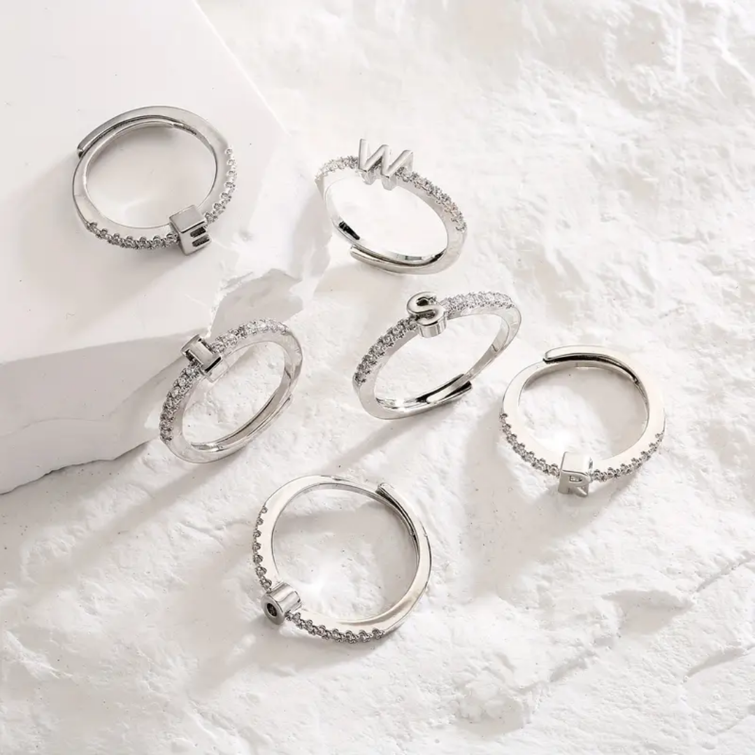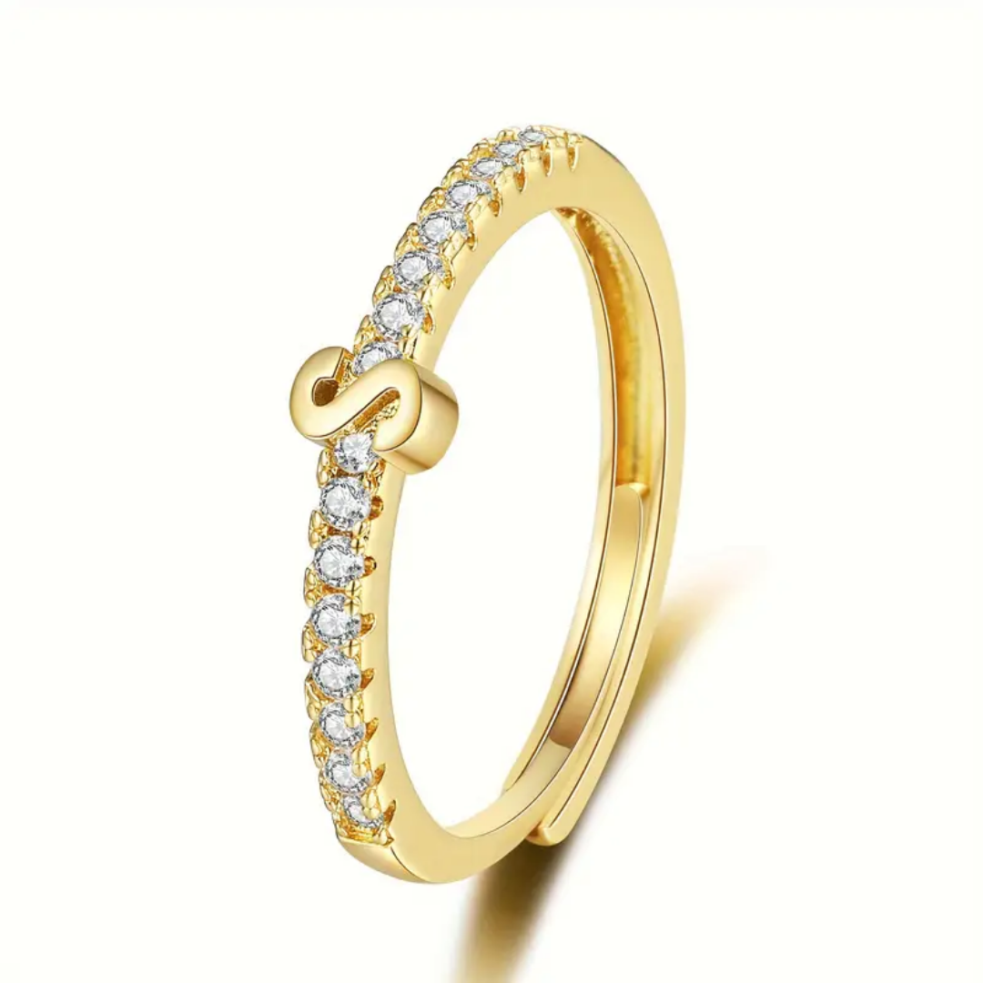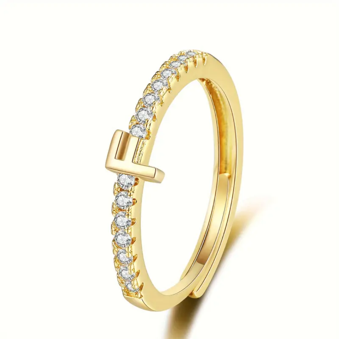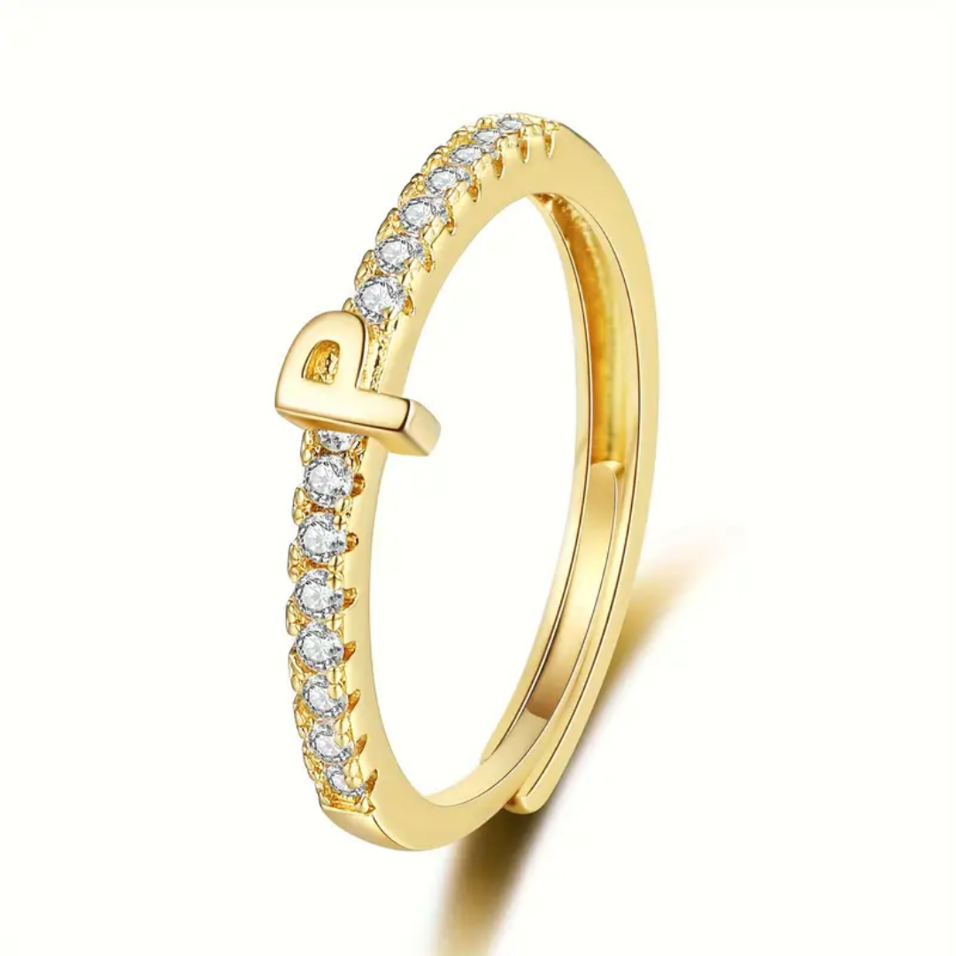 Vienná Iced Initial Letter Adjustable Open Ring
