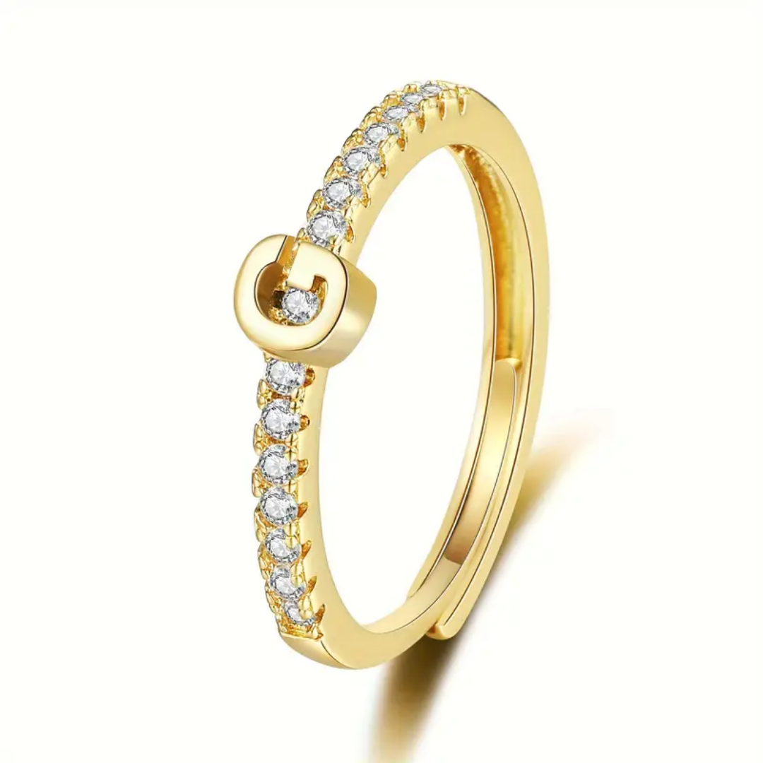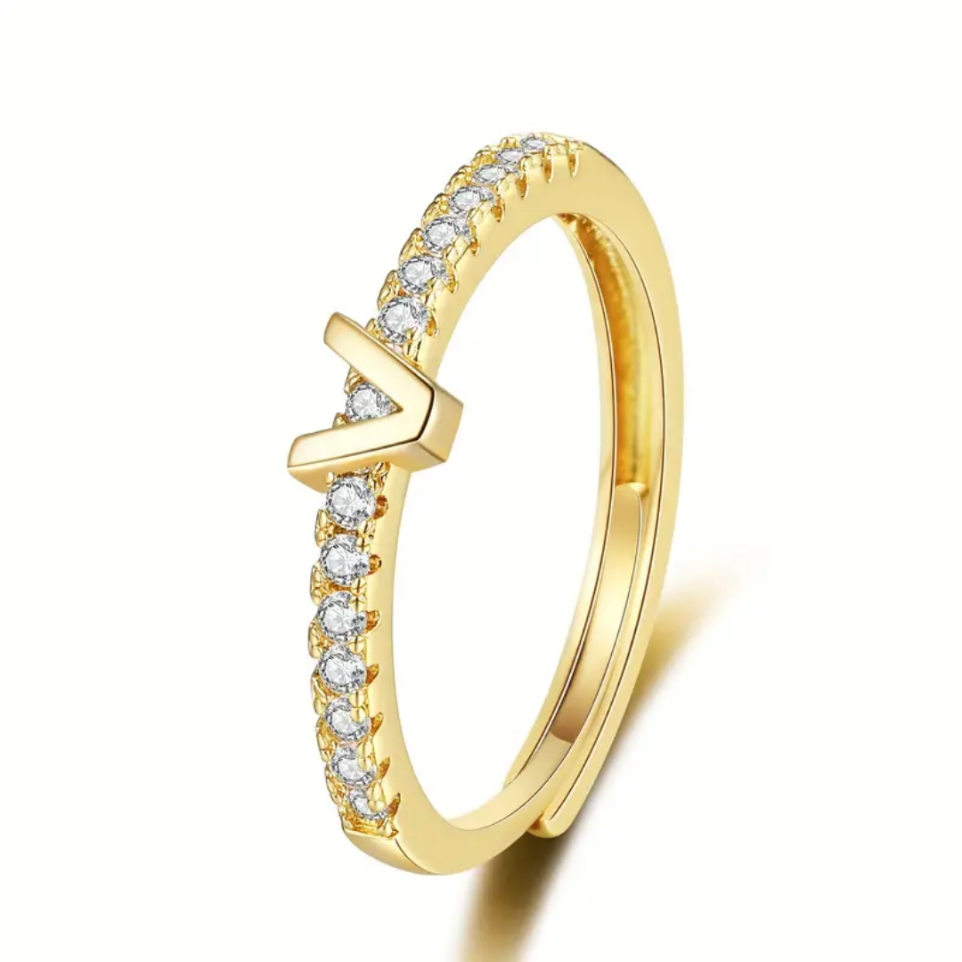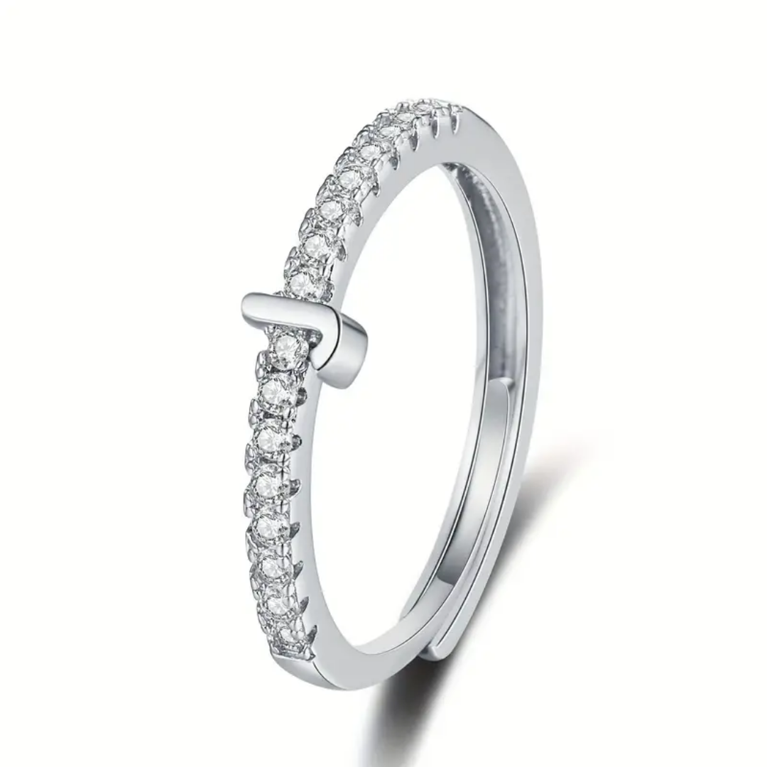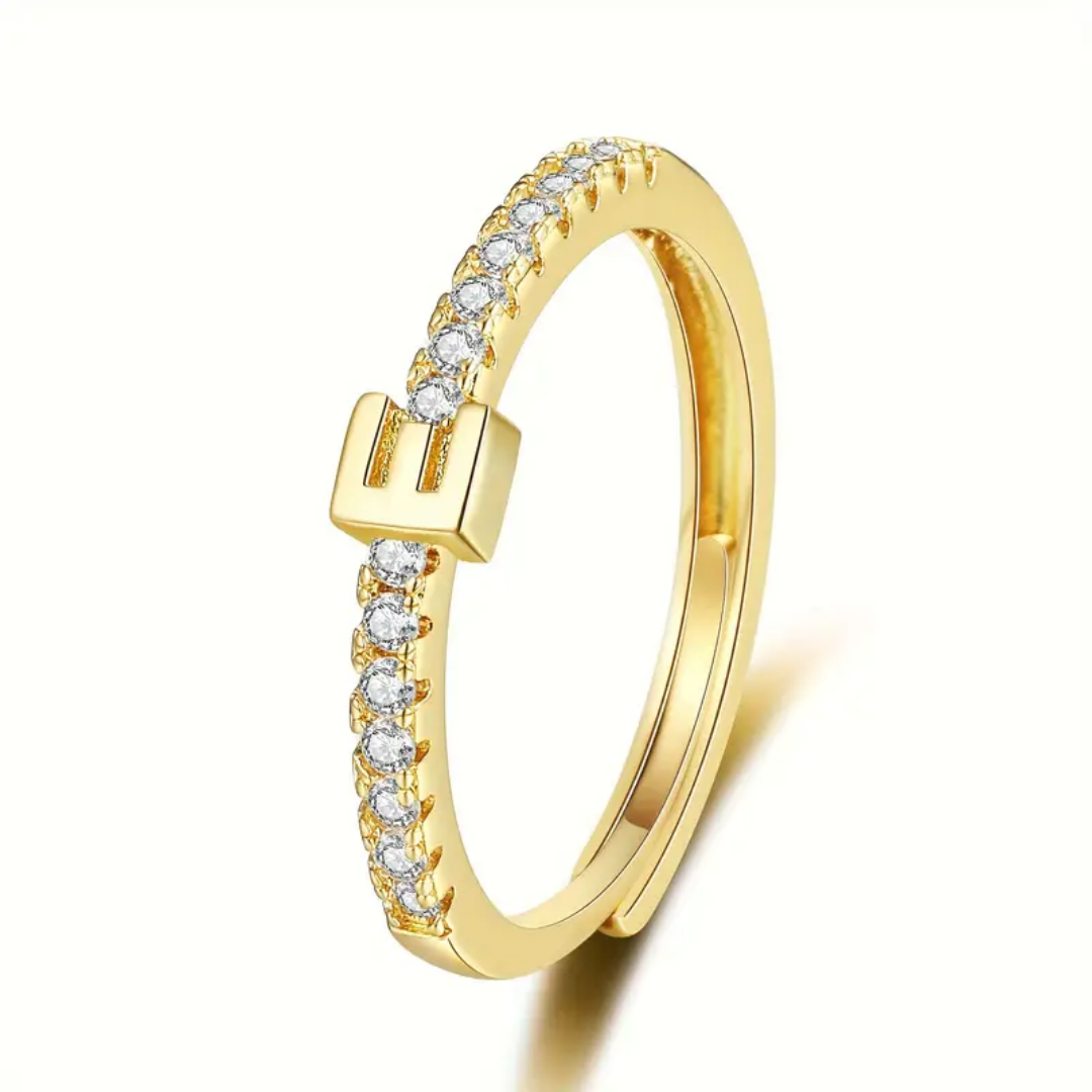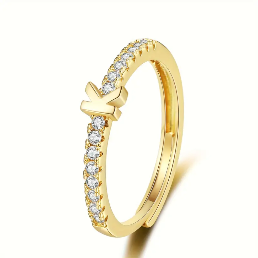 Vienná Iced Initial Letter Adjustable Open Ring