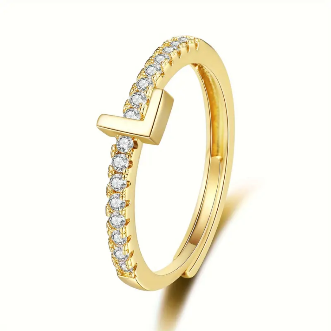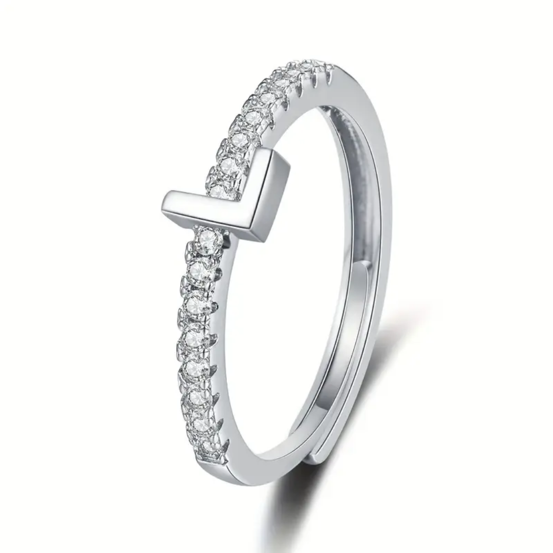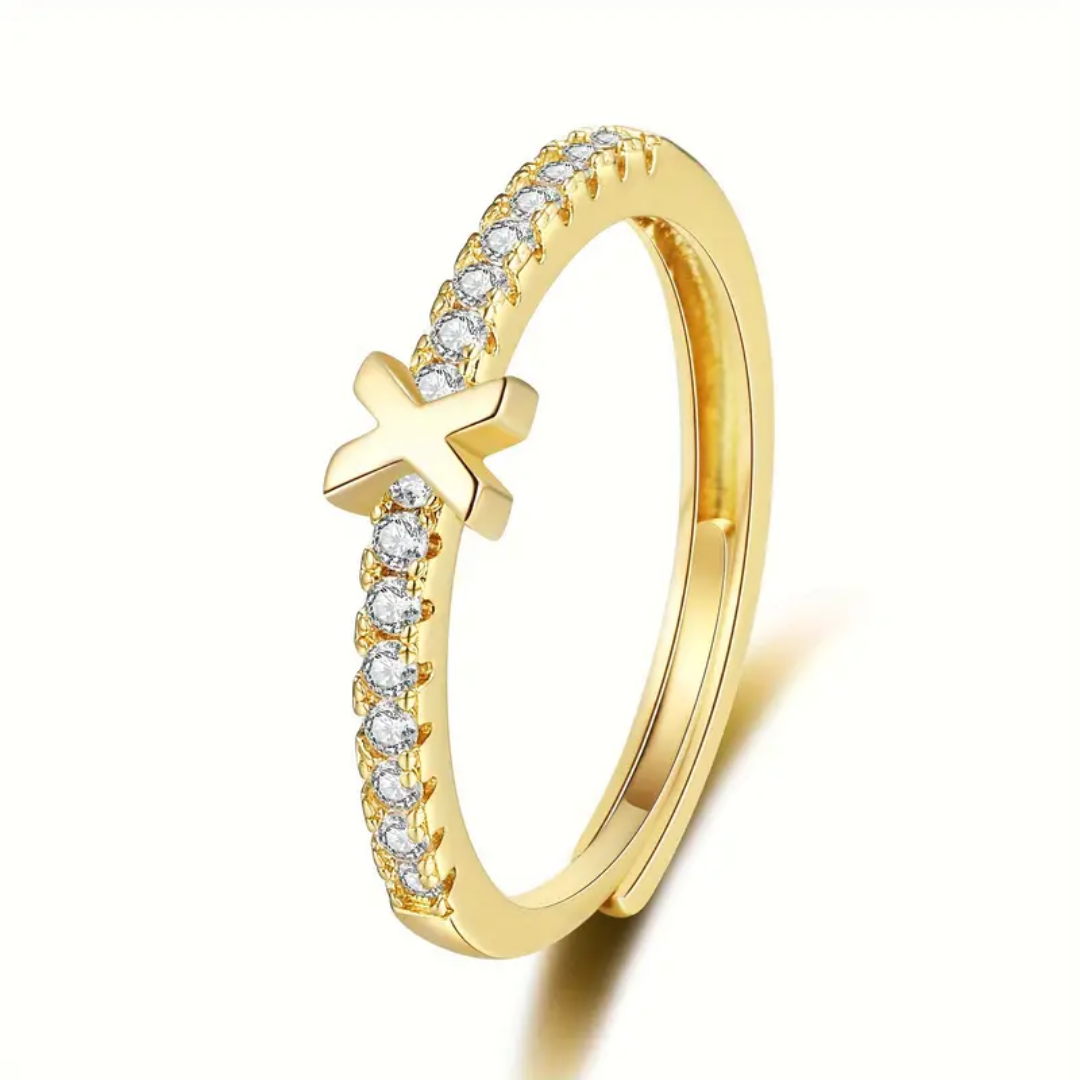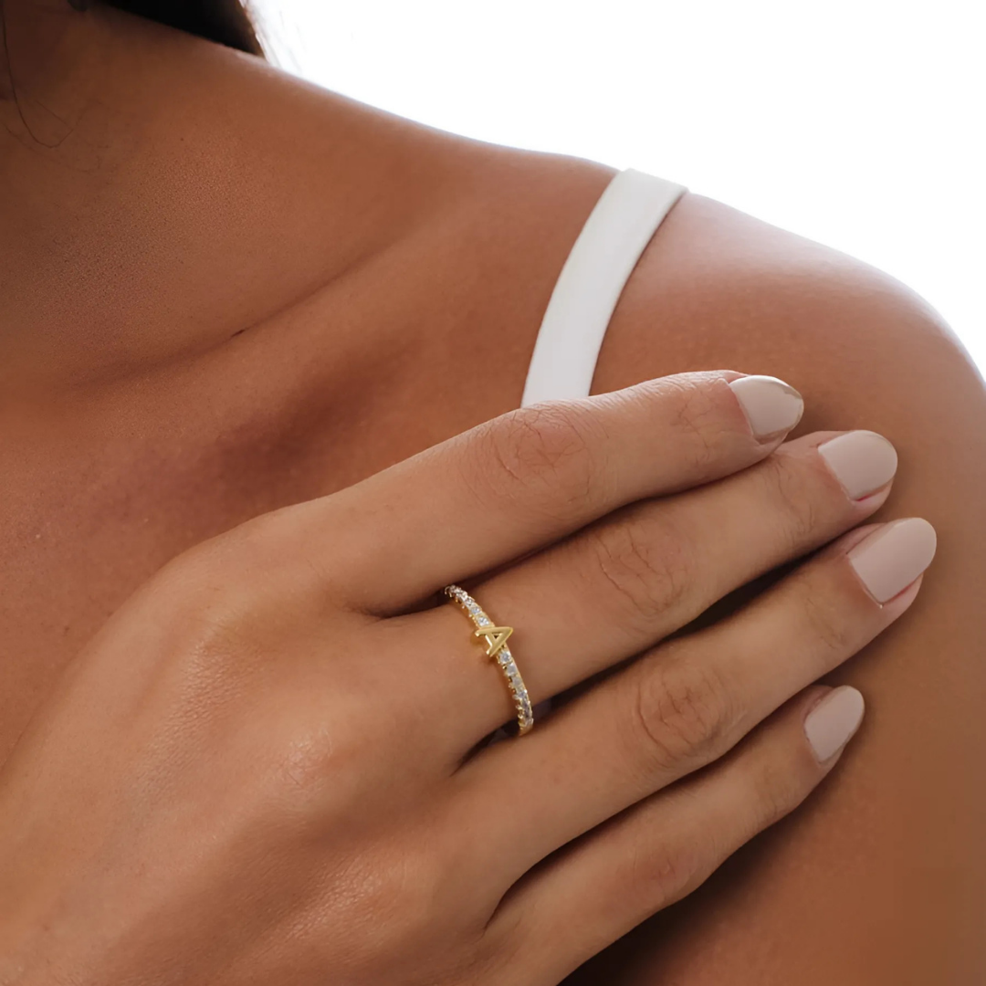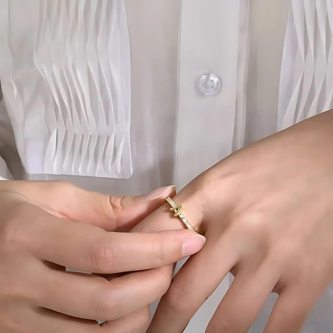Vienná Iced Initial Letter Adjustable Open Ring