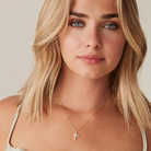 With its understated elegance and timeless appeal, this exquisite cross pendant will never tire of impressing you. The cubic zirconia stones are the star of the show, held in place by minimal prongs, making this necklace perfect to wear alone or layer with other pieces.