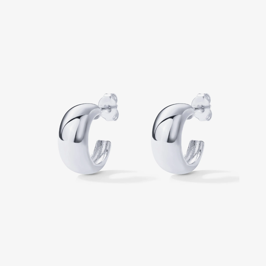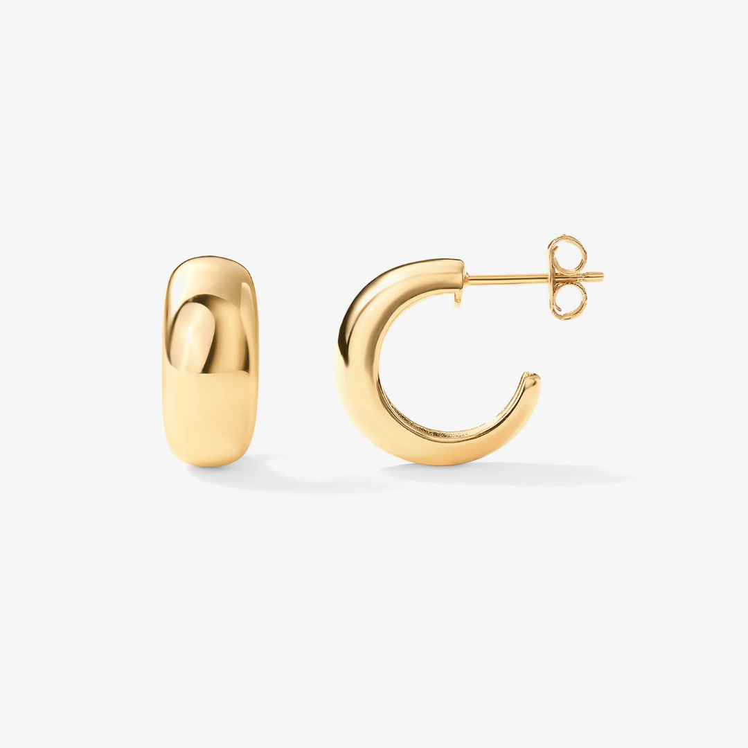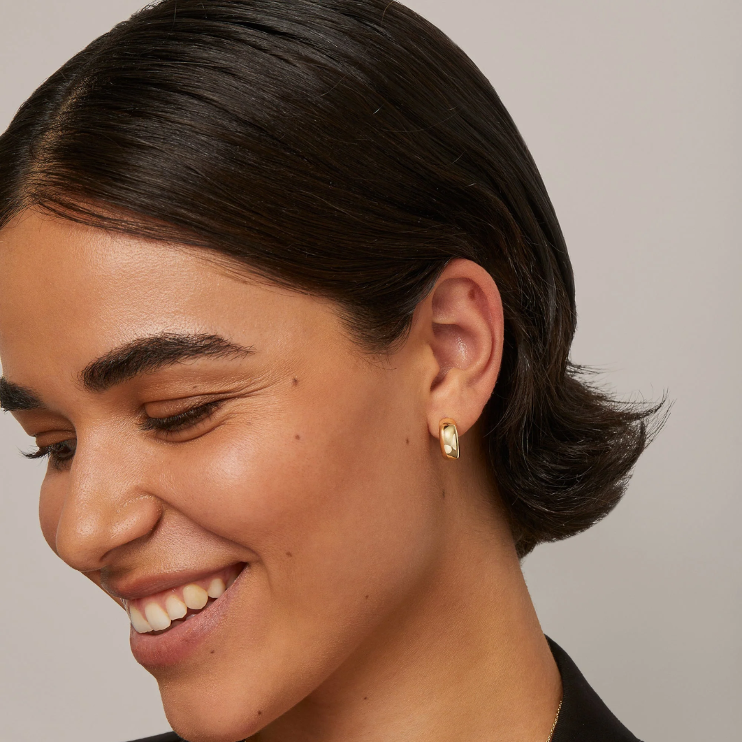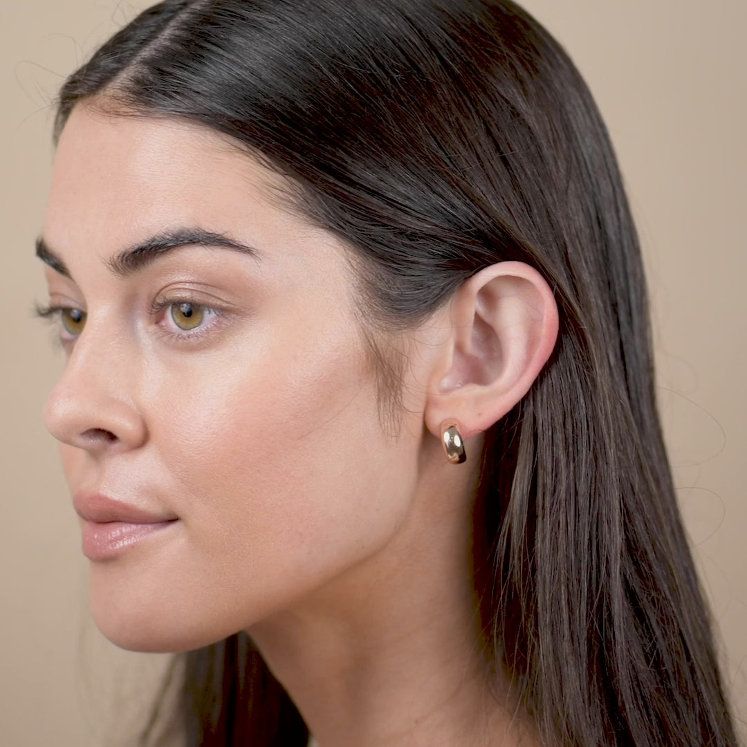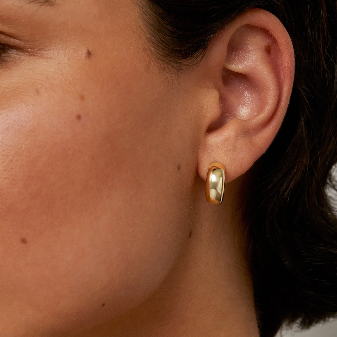 Unleash your rebellious side with our Domed Huggies – these aren't your average hoops. Flaunting an unapologetically high-polish finish and defiant curves, these lightweight warriors make a fearless statement without weighing you down. Bold enough for daily battle against fashion mediocrity, they're the essential armor your jewelry arsenal has been missing. Dare to elevate your style with these rule-breaking, head-turning huggies.