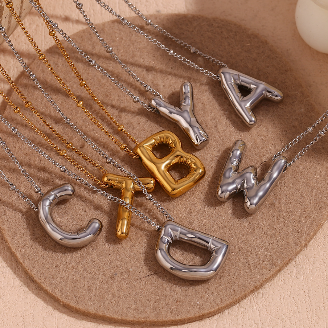 Add some playful glam to your outfit with our Glossy Bubble Letter Necklace! The vintage style initial letter necklace is available in gold or silver plating, with a shiny and balloon-like texture. A fun and playful accessory for any occasion!