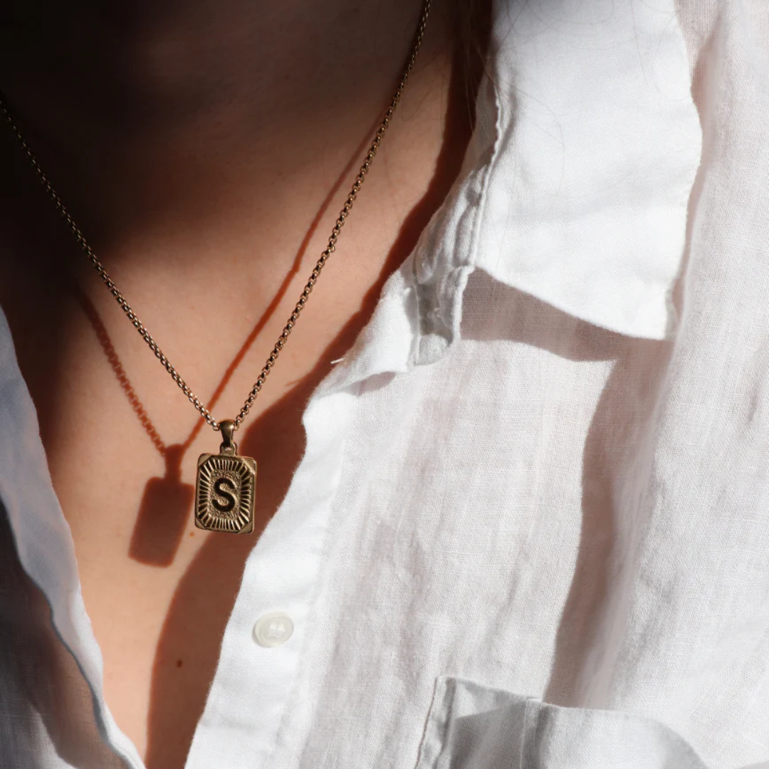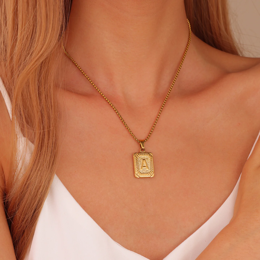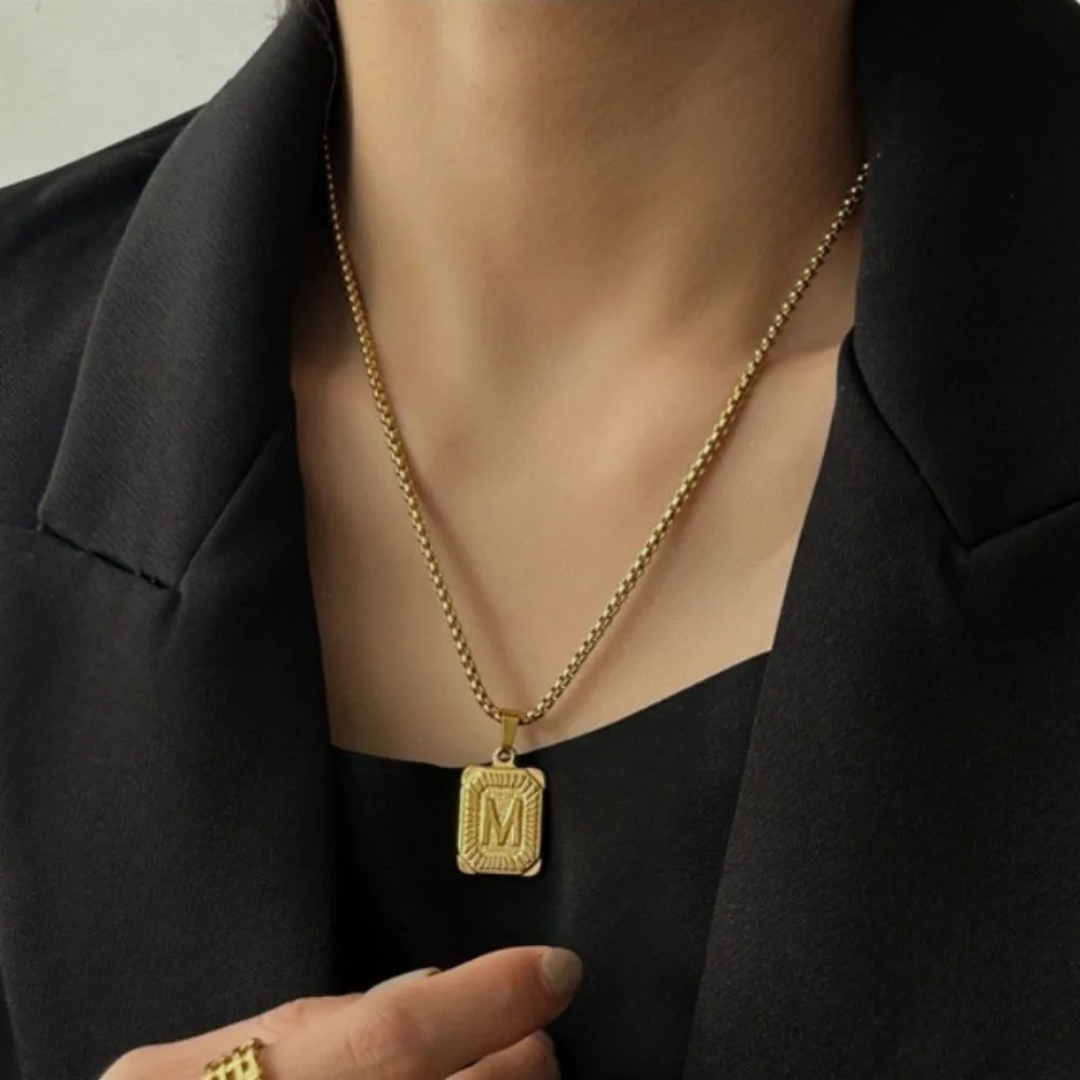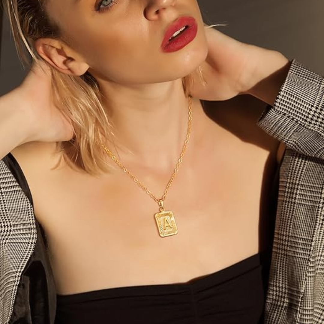 Elevate your attire with the distinguished Azhula Square Initial Letter Pendant Monogram Necklace. This elegant personalized piece showcases your chosen letter, adding a touch of individuality to your look. Exquisitely crafted, this sophisticated accessory transitions seamlessly from everyday wear to special occasions, embodying timeless style and refined taste.
