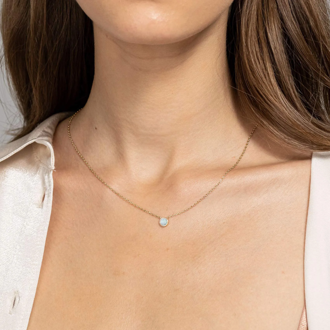 Elevate your style with our Opal Necklace, the epitome of sophistication. Featuring a luminescent bezel-set opal and a delicate chain with multiple length options, it's the perfect accessory for any occasion. Make a statement with this timeless and versatile piece in your jewelry box.